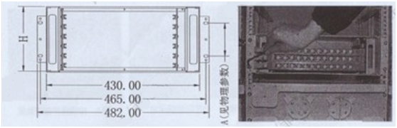 接续单元箱安装与19英寸机柜,安装尺寸如图1所示,安装时用4个M6方螺母组件固定在机柜立柱内侧(图2 )。